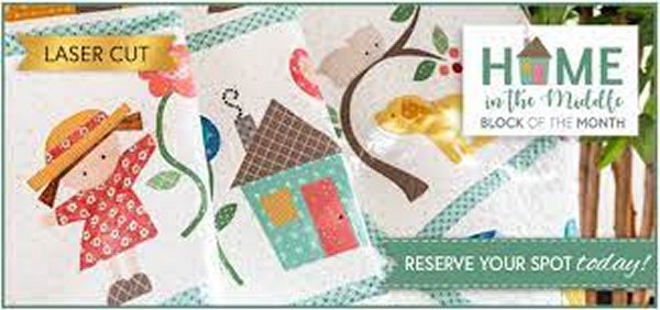 Another BOM from shabbyfabrics.com is Home in the Middle which is very fun, spring like, and whimsical. It is also a BOM that has prefused and laser cut applique pieces. It is just such a fresh adorable BOM.